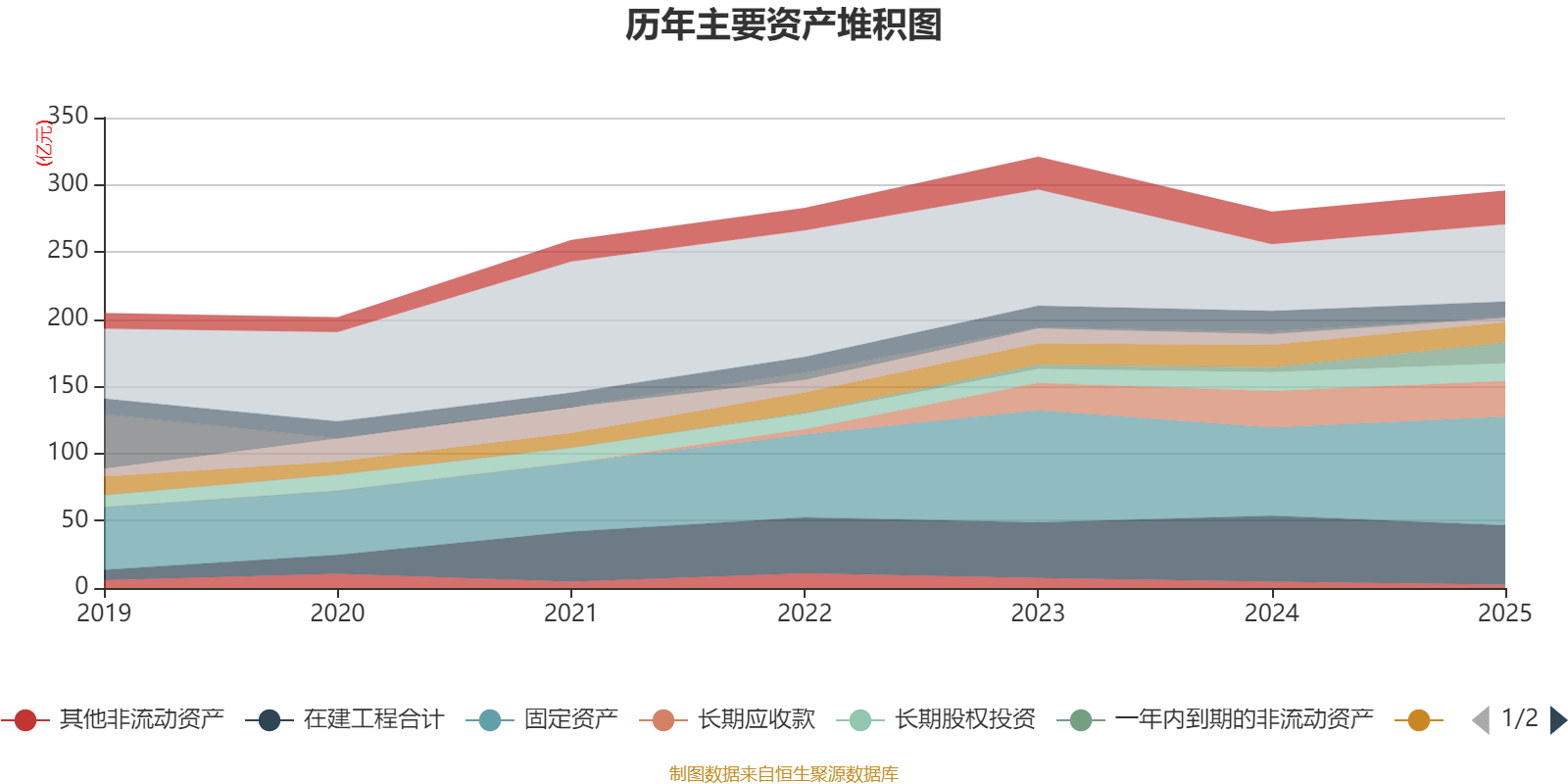 资产重大变化方面,截至2025年末,公司固定资产较上年末增加23.23%,占公司总资产比重上升3.92个百分点;一年内到期的非流动资产较上年末增加312.57%,占公司总资产比重上升3.88个百分点;在建工程合计较上年末减少10.25%,占公司总资产比重下降2.63个百分点;应收款项融资较上年末减少58.65%,占公司总资产比重下降1.73个百分点。