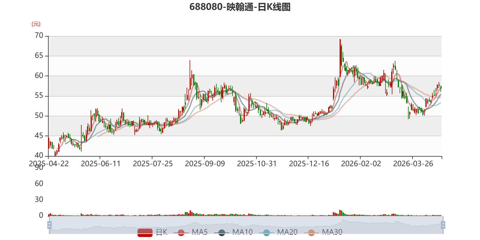 以4月21日收盘价计算,映翰通目前市盈率(TTM)约为30.82倍,市净率(LF)约3.57倍,市销率(TTM)约5.5倍。