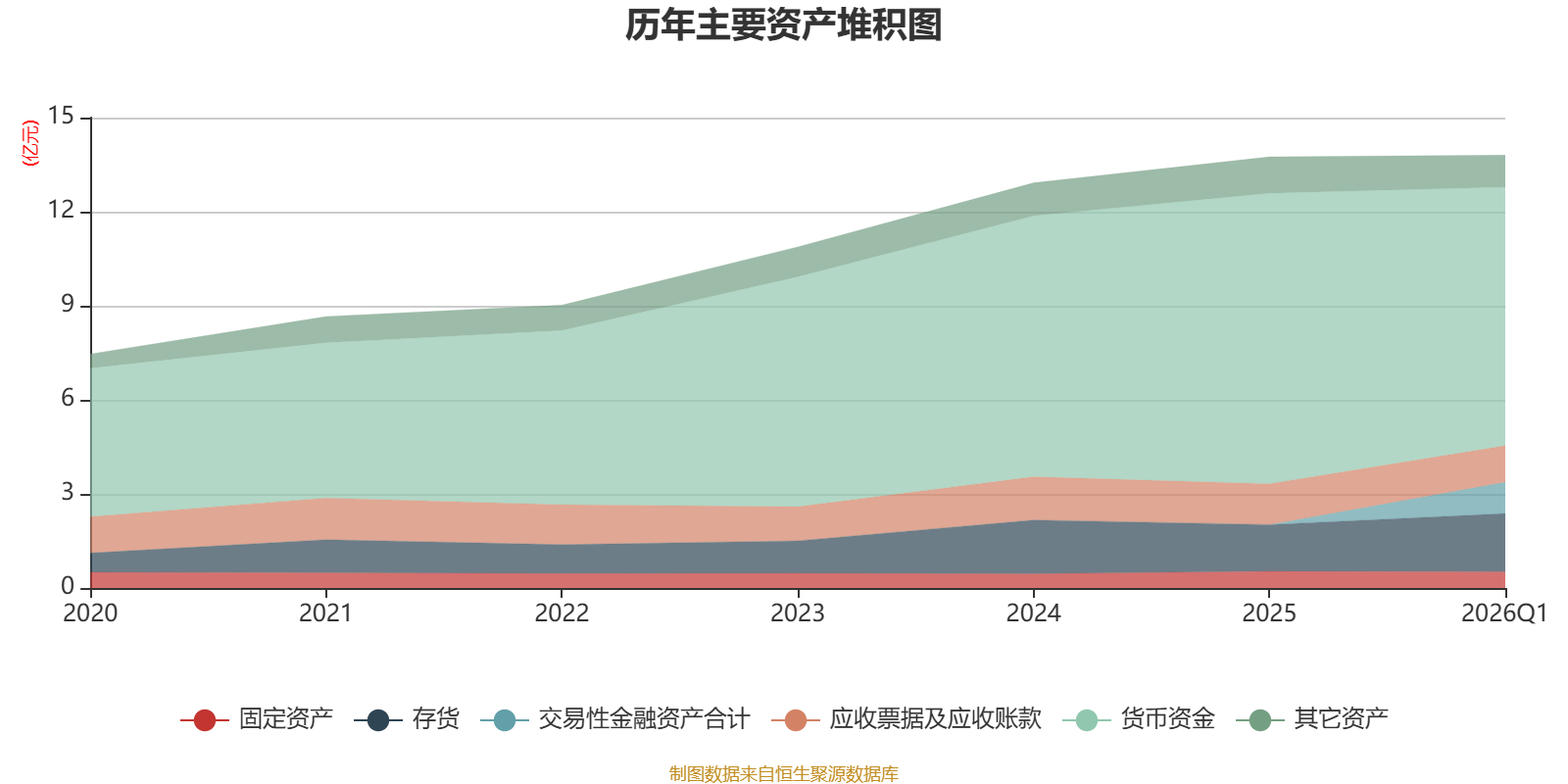 资产重大变化方面,截至2026年一季度末,公司货币资金较上年末减少11.02%,占公司总资产比重下降7.65个百分点;交易性金融资产合计占公司总资产的7.25%,上年末为0;存货较上年末增加24.7%,占公司总资产比重上升2.62个百分点;应收票据及应收账款较上年末减少10.71%,占公司总资产比重下降1.05个百分点。