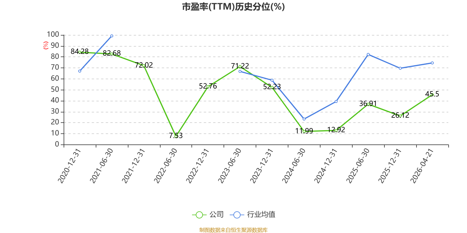 市盈率、市净率为负时,不显示当期分位数,会导致折线图中断。