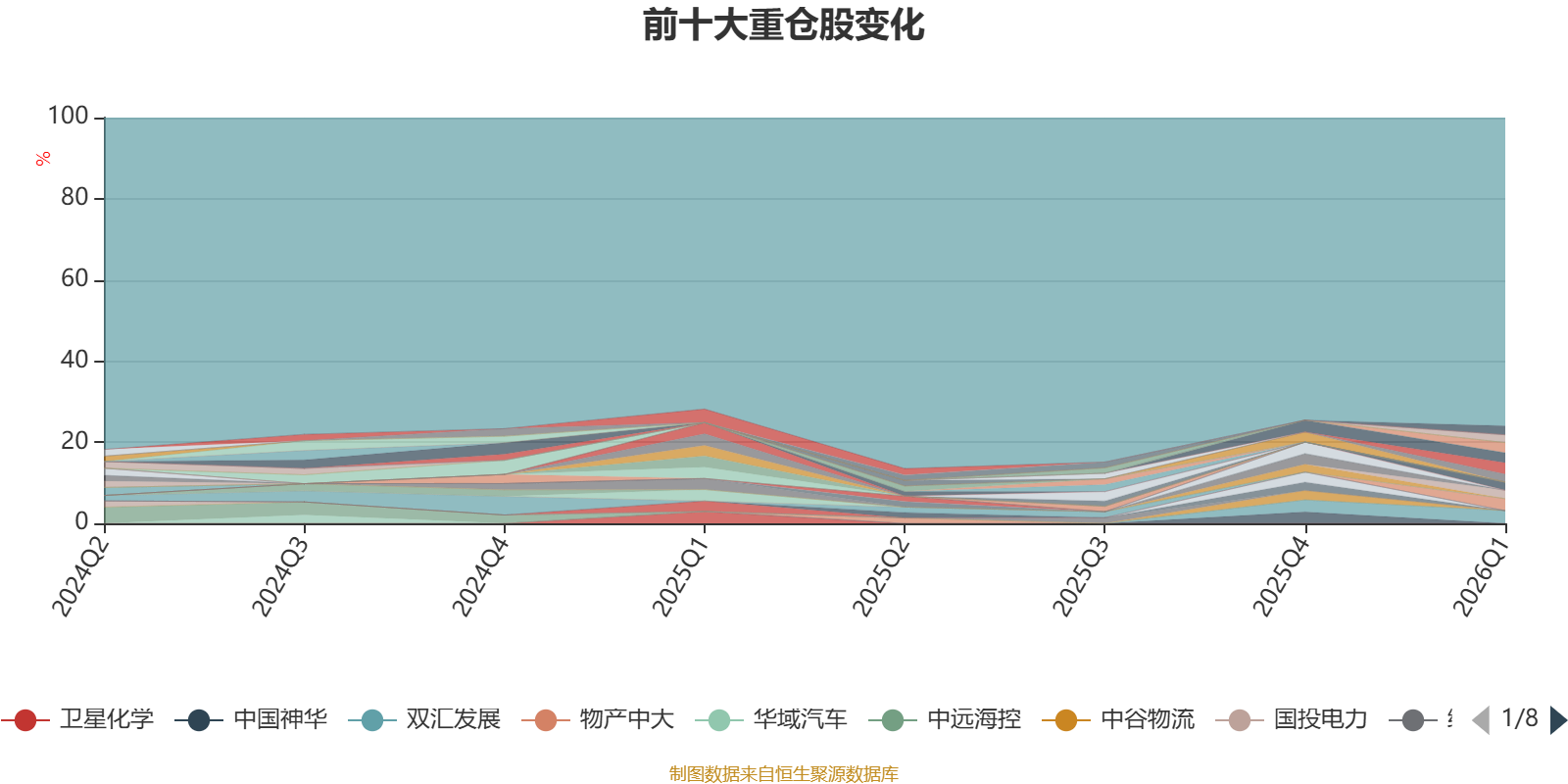截至2026年一季度末,基金十大重仓股分别是双汇发展、洪城环境、江苏银行、浙能电力、美的集团、宇通客车、华润三九、四川路桥、首创环保、华能国际。