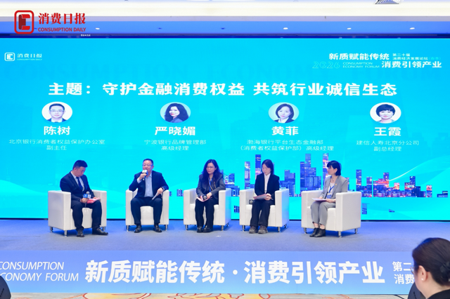 本次论坛举行“守护金融消费权益共筑行业诚信生态”圆桌论坛,就新形势下金融消费者权益保护问题展开讨论,尤其是构建金融消保长效生态机制,来自北京银行、宁波银行、渤海银行、建信人寿等机构负责人各抒己见,发表了他们的看法。
