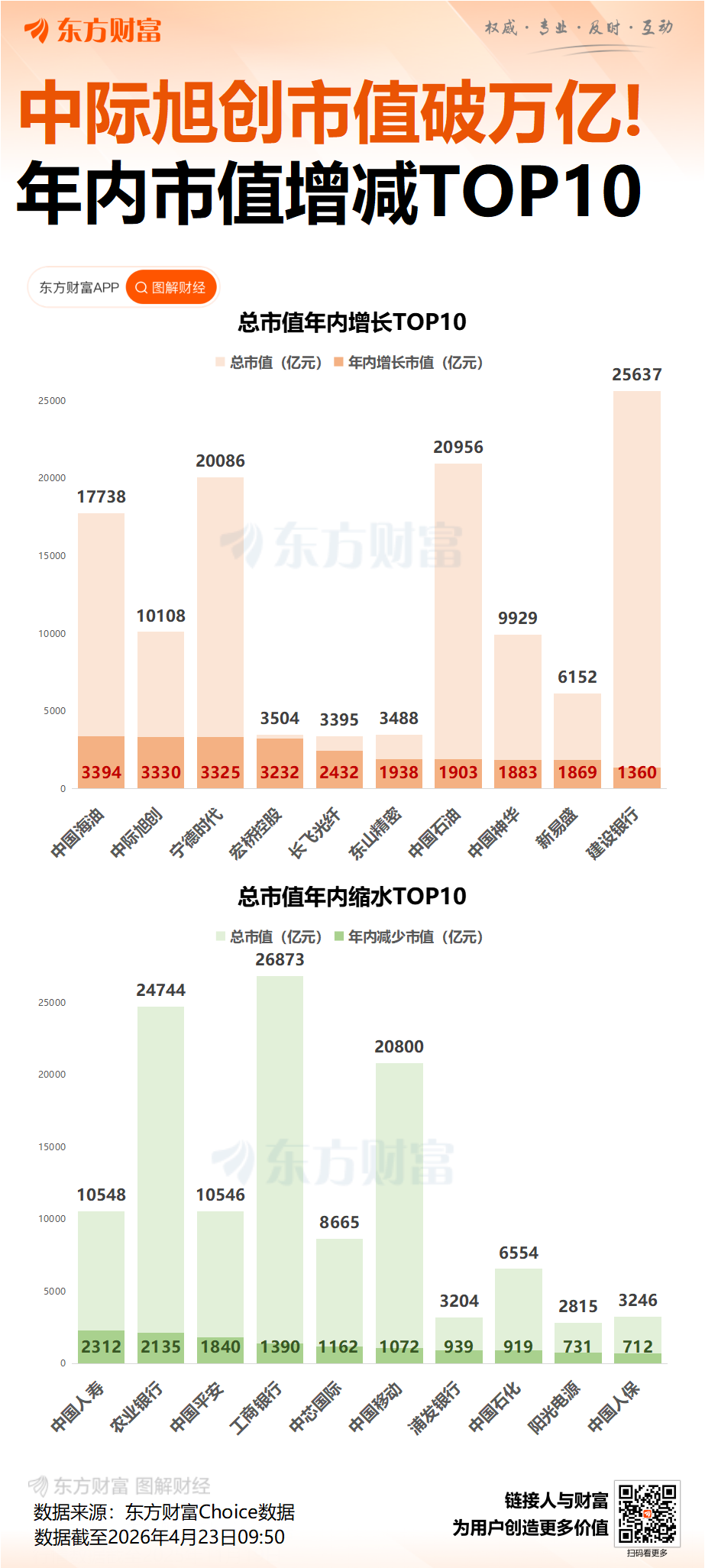 早盘光模块龙头中际旭创涨近3%,成为继工业富联后第二只总市值突破1万亿的算力硬件股,该股自去年4月22日以来累计上涨超1000%。消息面上,中际旭创发布的2026年第一季度财报显示,公司实现归属于上市公司股东的净利润为57.35亿元,同比增长262.28%,环比增长56.48%。截至3月末,公司预付款项14.88亿元,相比上期(去年12月末预付款项为1.34亿元)增长1009.48%。