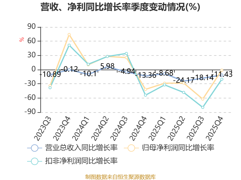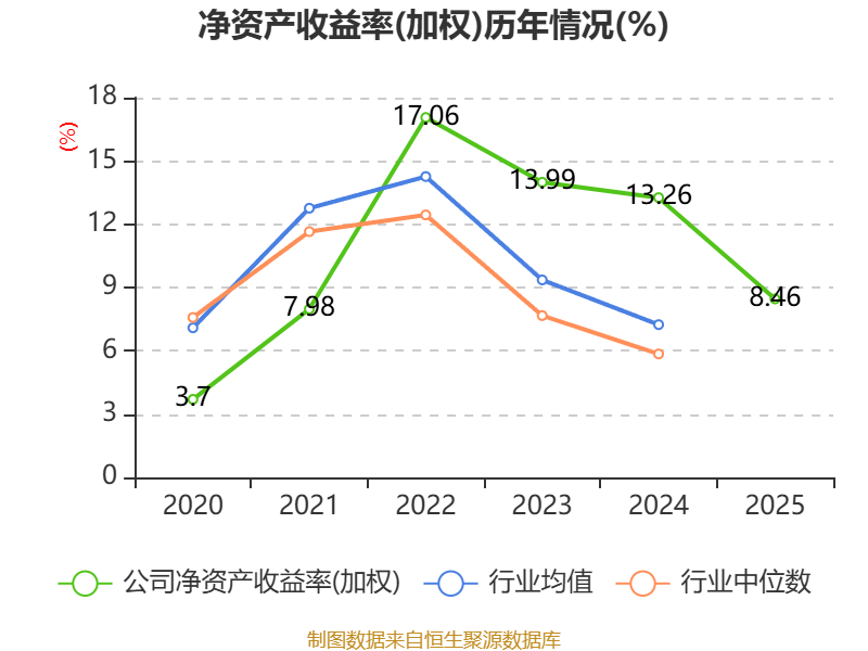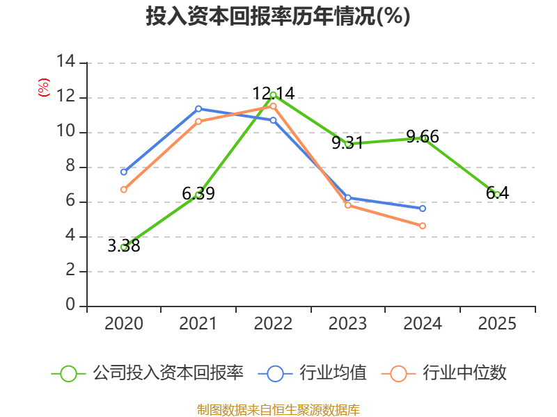 数据显示,2025年公司加权平均净资产收益率为8.46%,较上年同期下降4.8个百分点。公司2025年投入资本回报率为6.4%,较上年同期下降3.26个百分点。