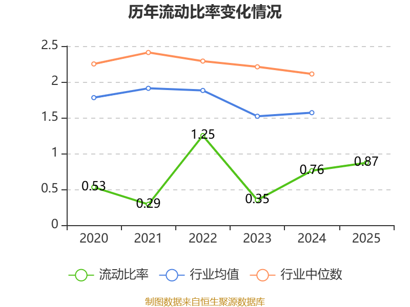 2025年,公司流动比率为0.87,速动比率为0.35。