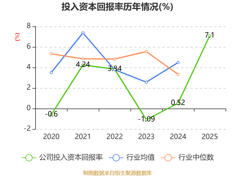 数据显示,2025年公司加权平均净资产收益率为11.58%,较上年同期上升36.05个百分点。公司2025年投入资本回报率为7.1%,较上年同期上升6.58个百分点。
