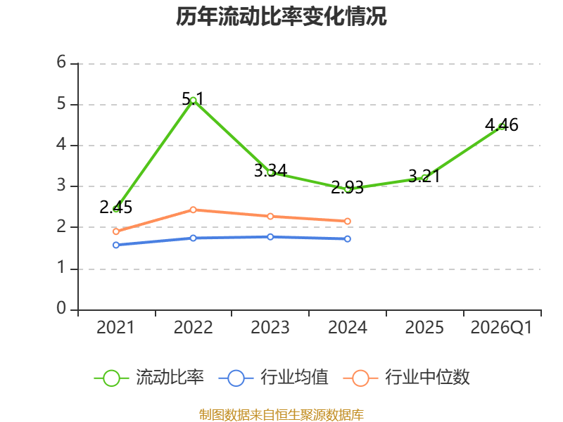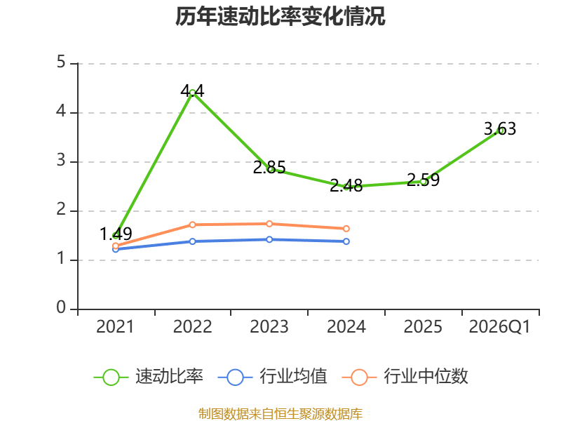 2026年第一季度,公司流动比率为4.46,速动比率为3.63。