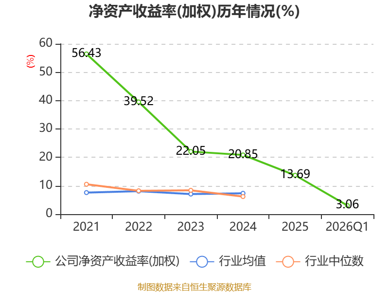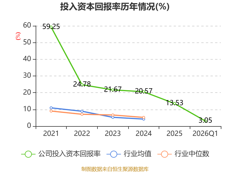 盈利能力方面, 2026年一季度公司加权平均净资产收益率为3.06%,同比下降0.92个百分点。公司2026年第一季度投入资本回报率为3.05%,较上年同期下降0.91个百分点。