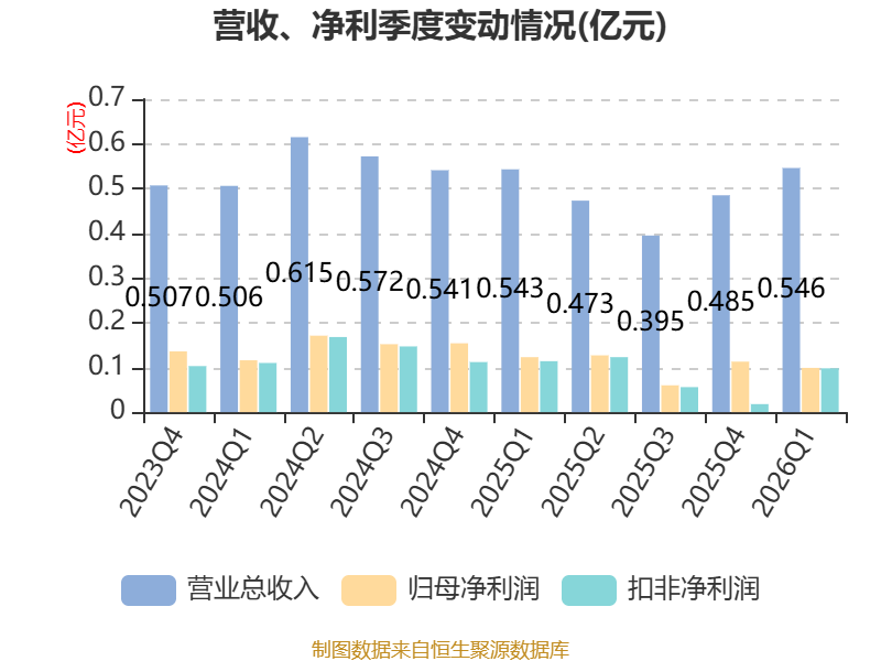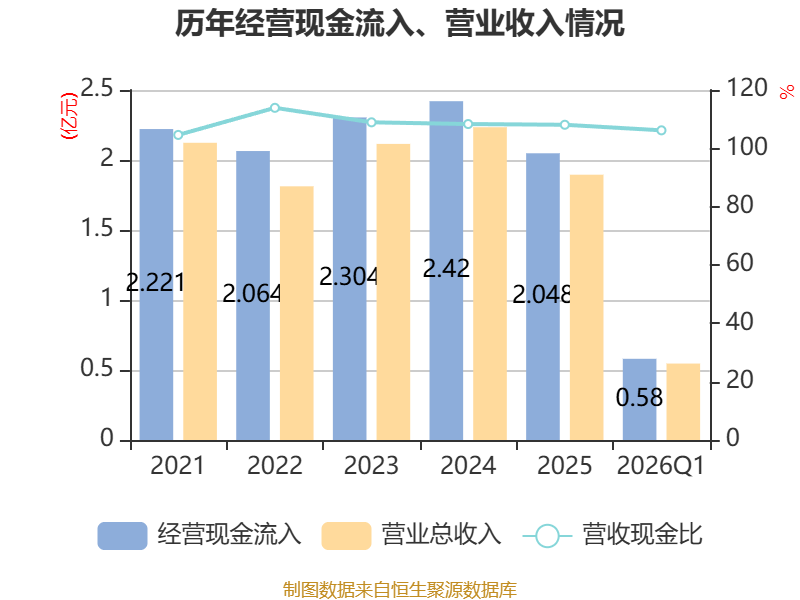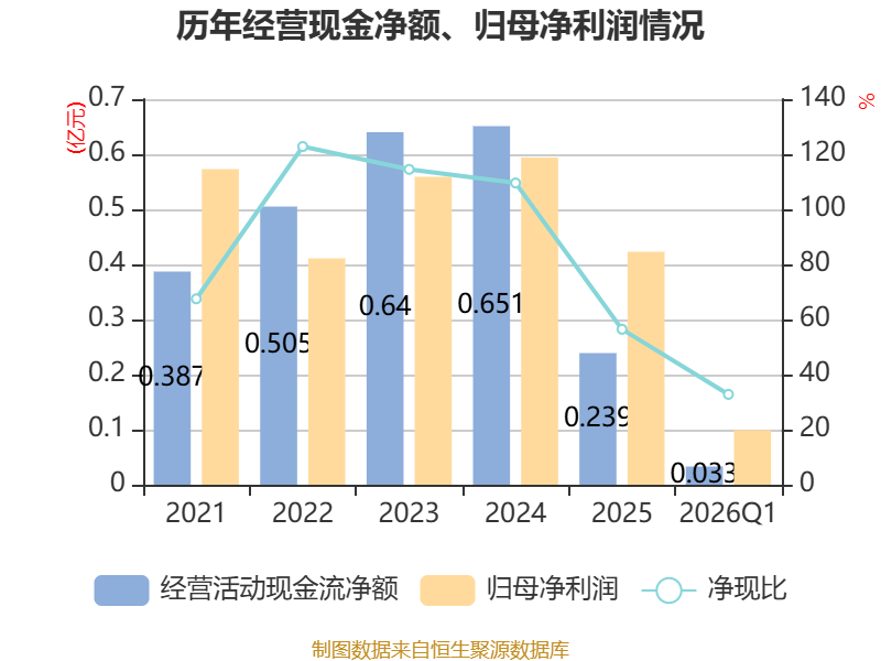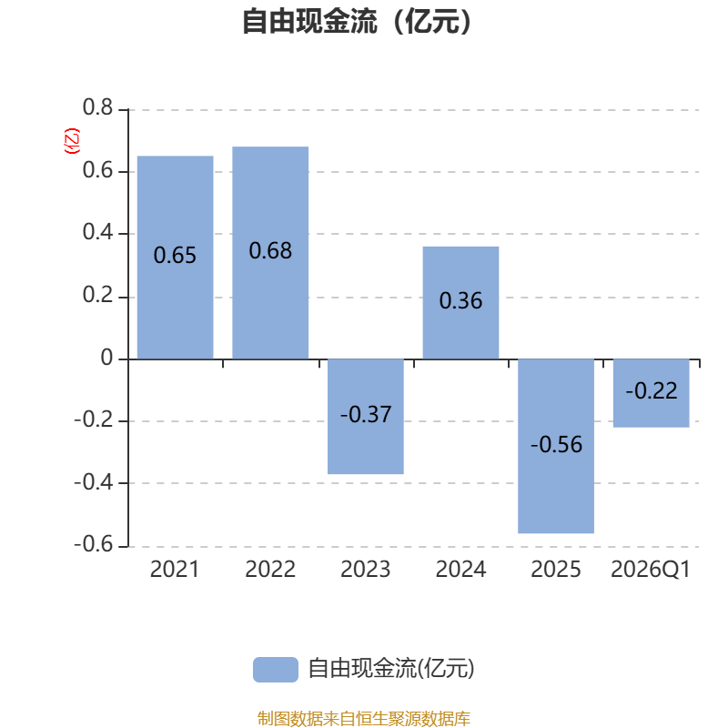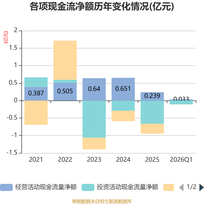 截至2026年一季度末,公司经营活动现金流净额为326.06万元,同比增长26.3%;筹资活动现金流净额-15.8万元,同比减少15.8万元;投资活动现金流净额-1103.15万元,上年同期为-9317.67万元。