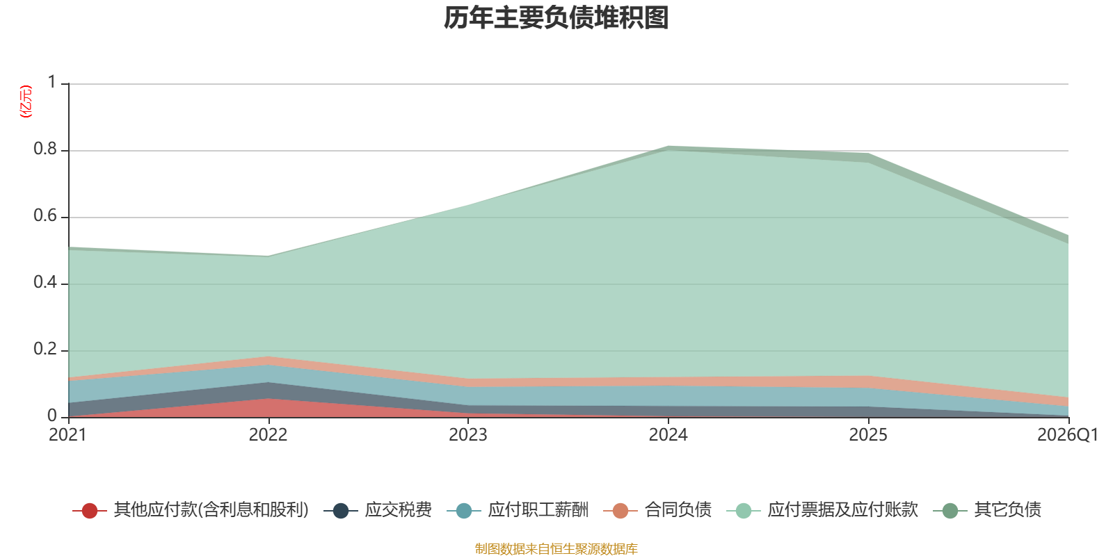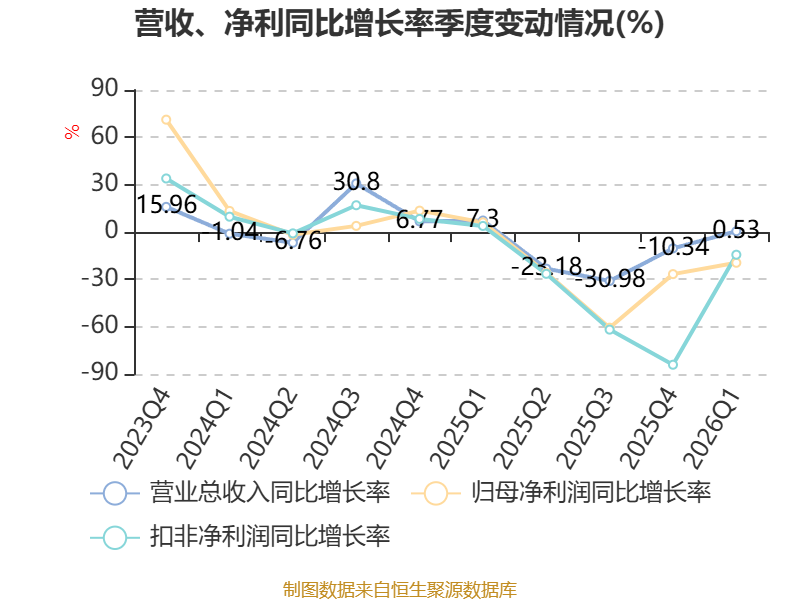 负债重大变化方面,截至2026年一季度末,公司应付票据及应付账款较上年末减少27.85%,占公司总资产比重下降4.01个百分点;应付职工薪酬较上年末减少50.44%,占公司总资产比重下降0.68个百分点;应交税费较上年末减少88.17%,占公司总资产比重下降0.68个百分点;合同负债较上年末减少25.9%,占公司总资产比重下降0.21个百分点。