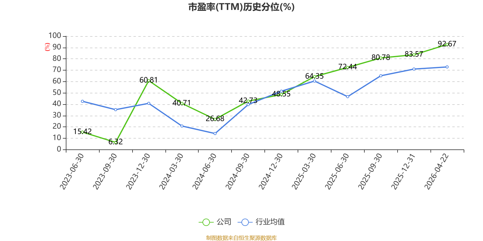 市盈率、市净率为负时,不显示当期分位数,会导致折线图中断。