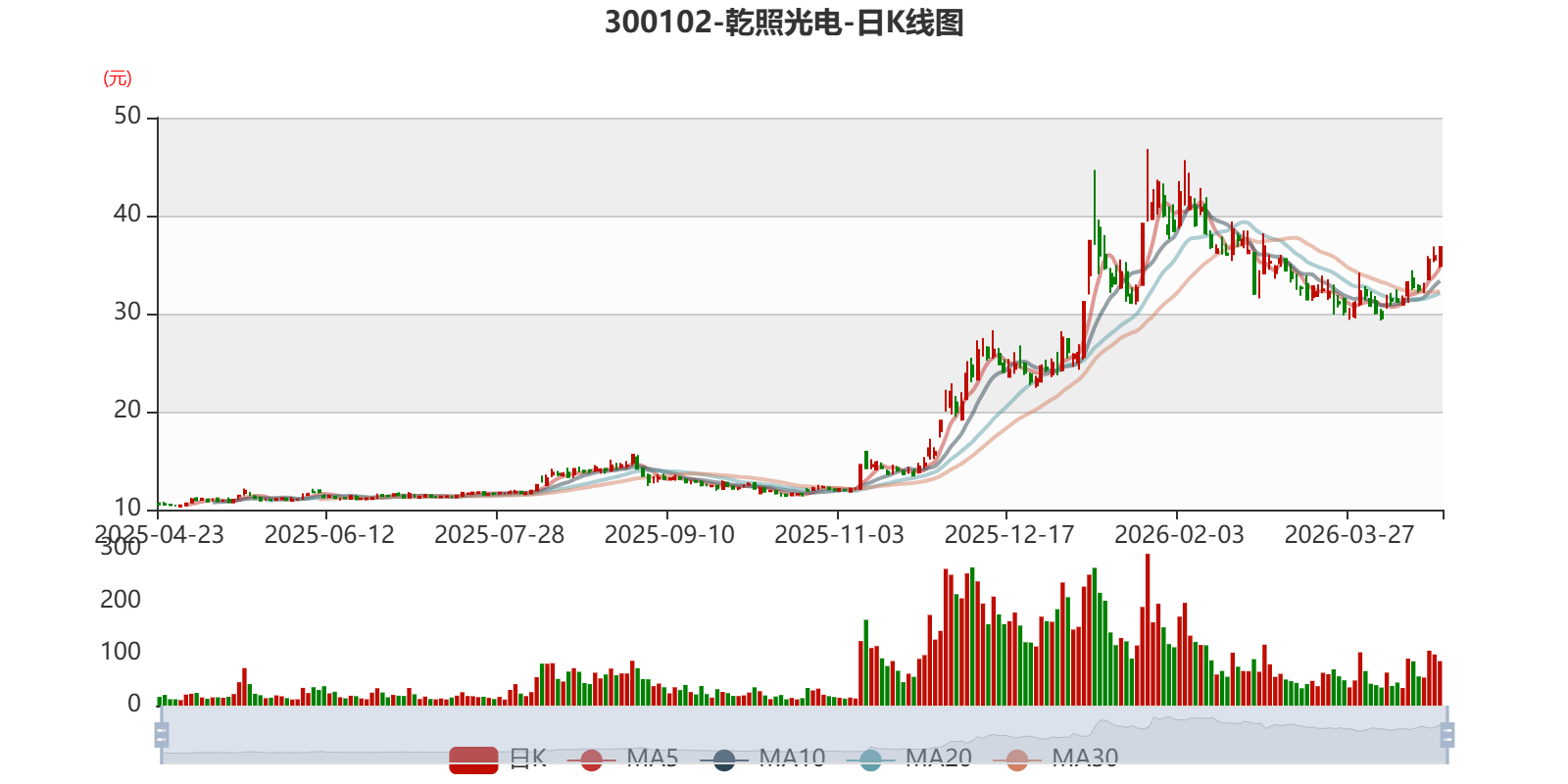 中证智能财讯乾照光电(300102)4月23日披露2026年第一季度报告。公司实现营业总收入4.09亿元,同比下降47.27%;归母净利润2964.06万元,同比增长6.59%;扣非净利润亏损2400.44万元,上年同期盈利1987.76万元;经营活动产生的现金流量净额为-6205.08万元,上年同期为1.25亿元;报告期内,乾照光电基本每股收益为0.03元,加权平均净资产收益率为0.69%。
