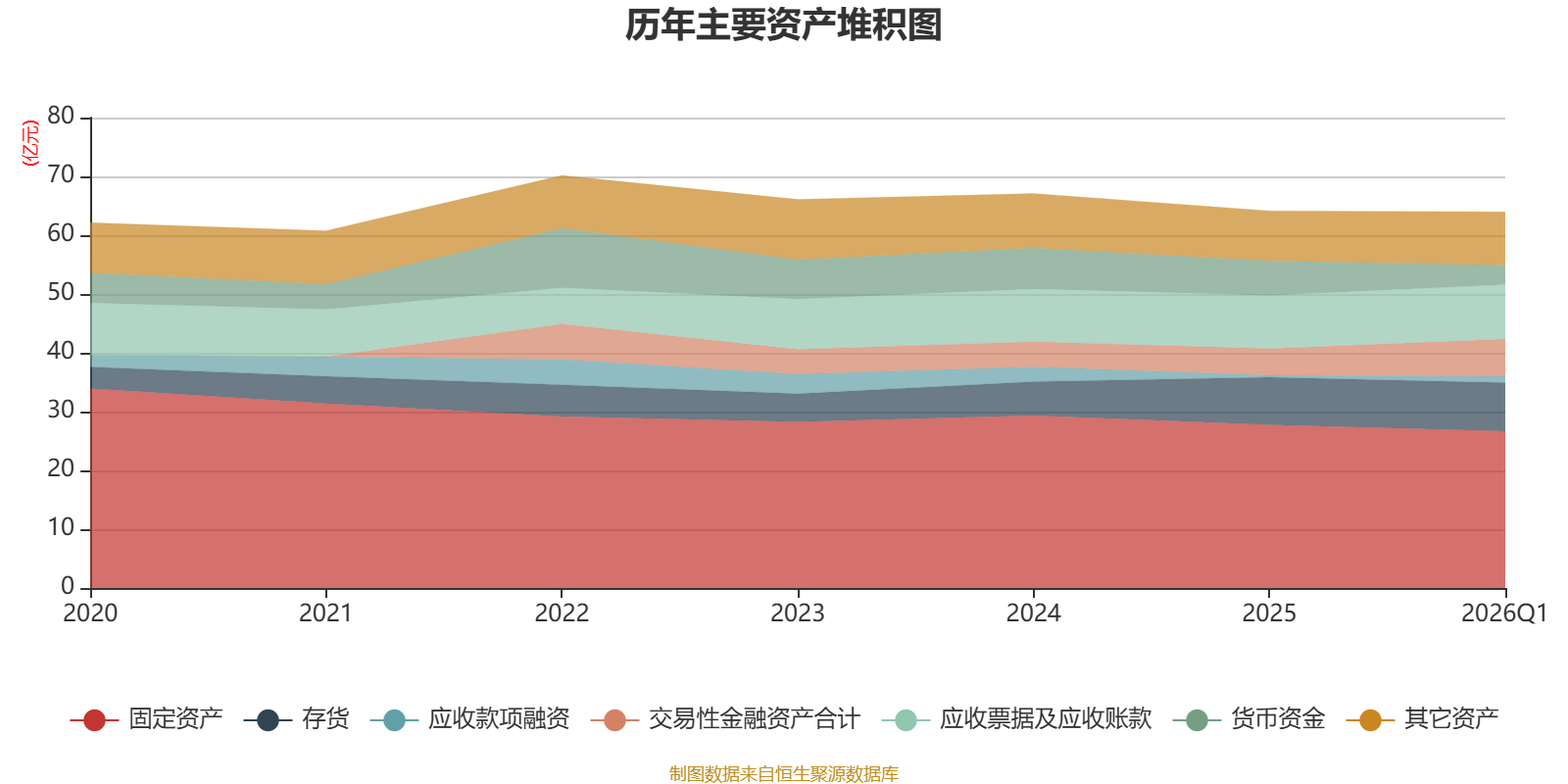 资产重大变化方面,截至2026年一季度末,公司货币资金较上年末减少43.44%,占公司总资产比重下降3.98个百分点;交易性金融资产合计较上年末增加39.29%,占公司总资产比重上升2.81个百分点;固定资产较上年末减少3.96%,占公司总资产比重下降1.6个百分点;应收款项融资较上年末增加251.77%,占公司总资产比重上升1.23个百分点。