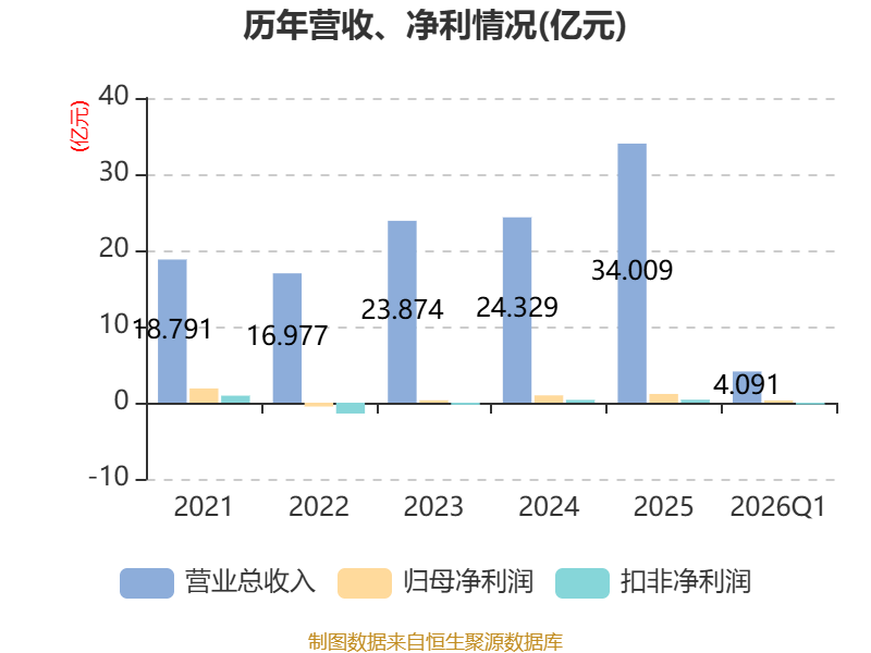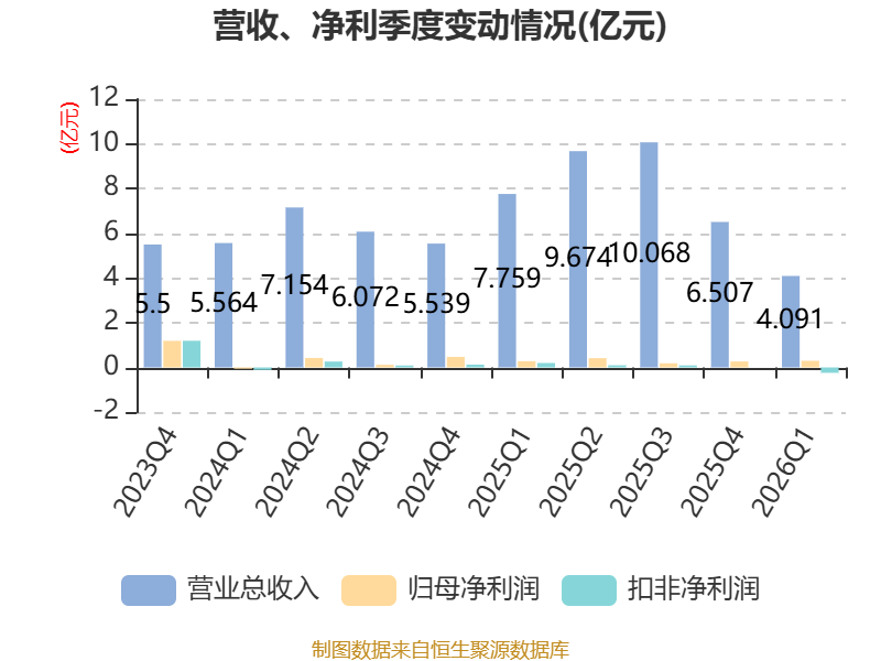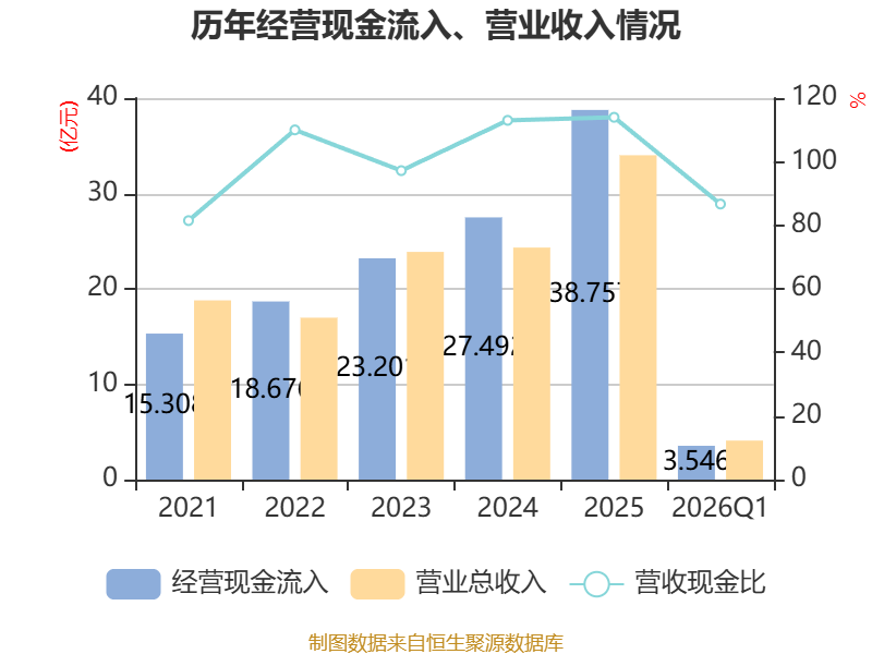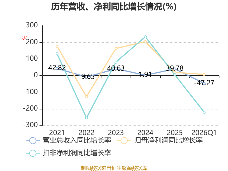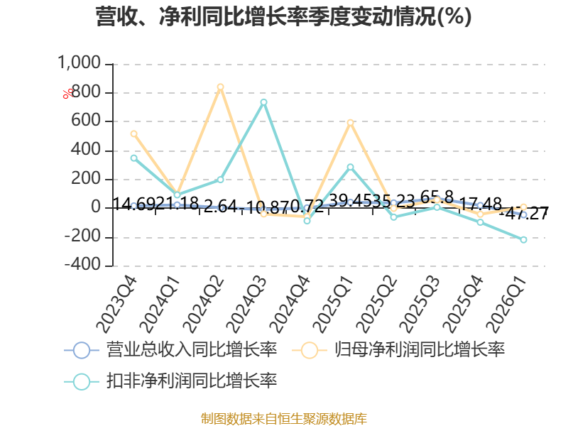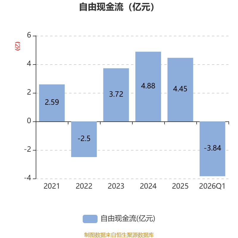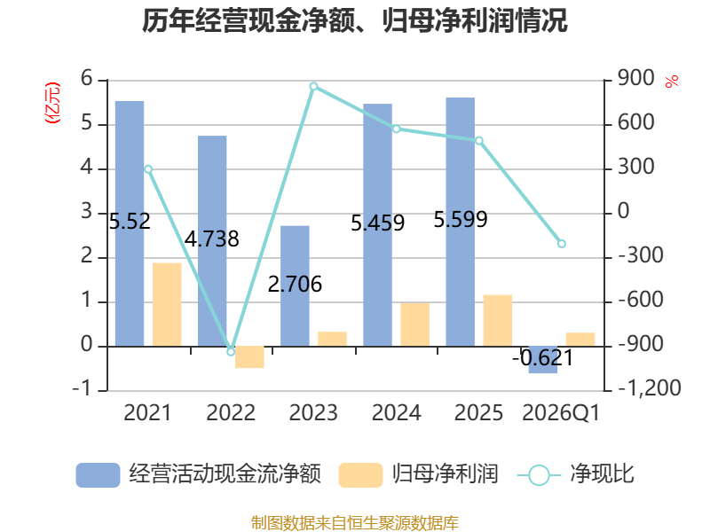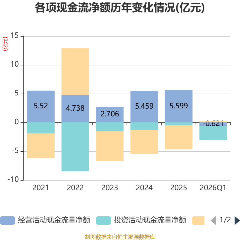 截至2026年一季度末,公司经营活动现金流净额为-6205.08万元,同比减少1.87亿元;筹资活动现金流净额2015.81万元,同比增加1.96亿元;投资活动现金流净额-2.45亿元,上年同期为1.18亿元。