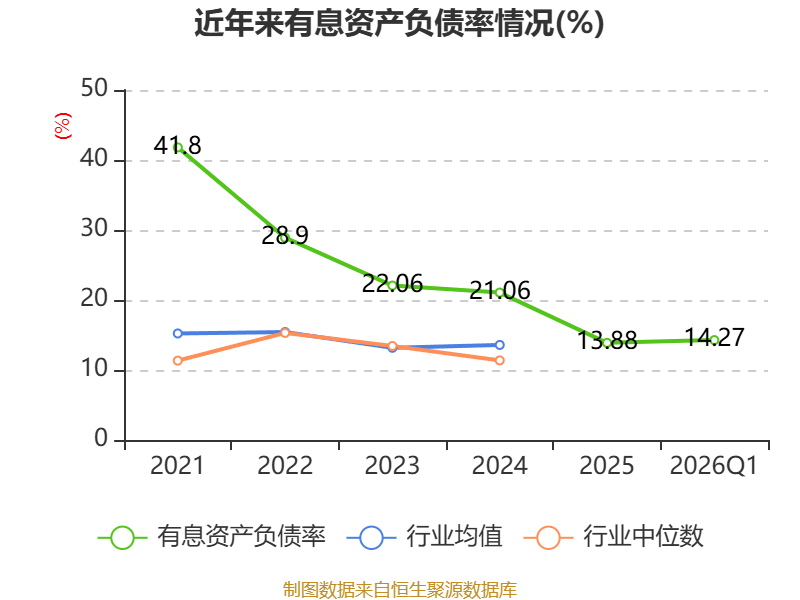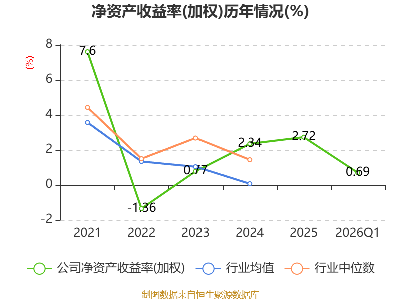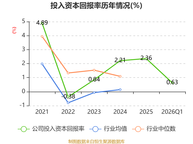 盈利能力方面, 2026年一季度公司加权平均净资产收益率为0.69%,同比上升0.02个百分点。公司2026年第一季度投入资本回报率为0.63%,较上年同期下降0.05个百分点。