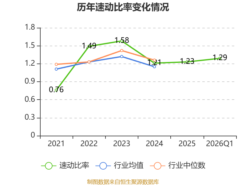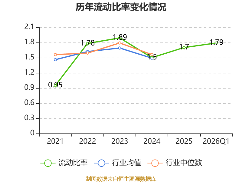 2026年第一季度,公司流动比率为1.79,速动比率为1.29。