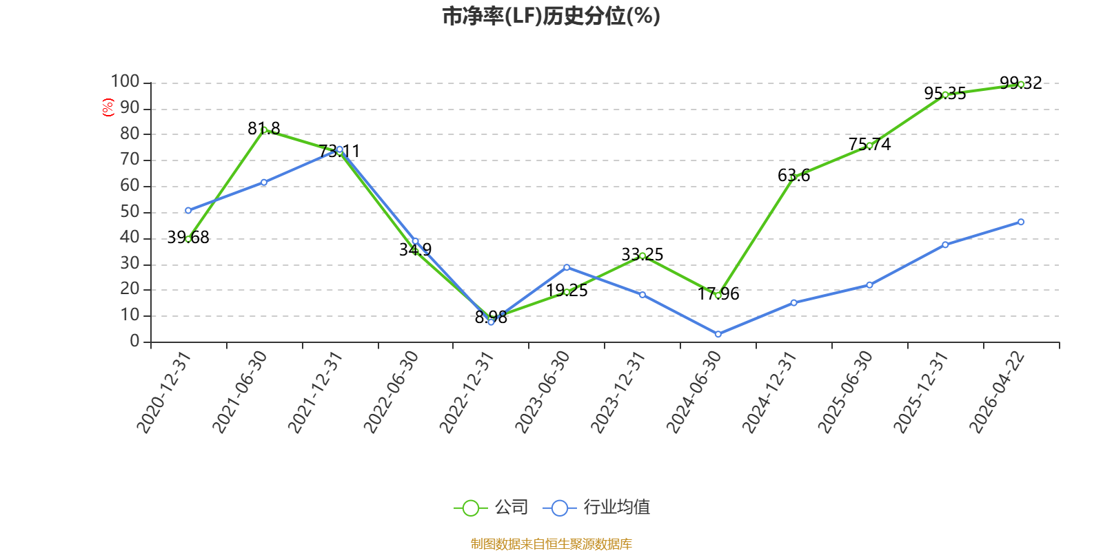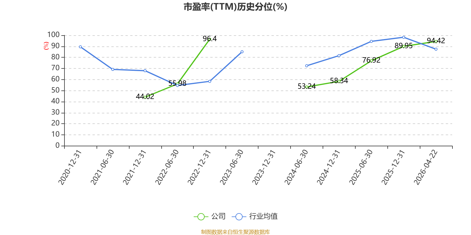 市盈率、市净率为负时,不显示当期分位数,会导致折线图中断。