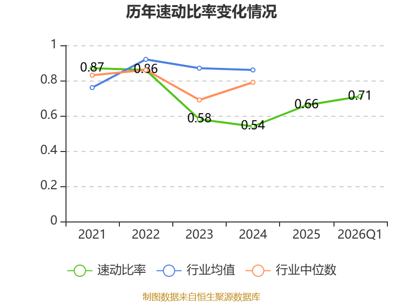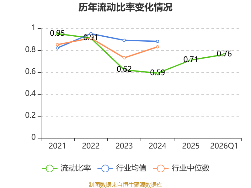 2026年第一季度,公司流动比率为0.76,速动比率为0.71。