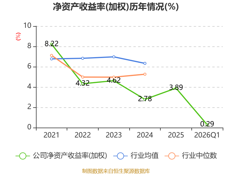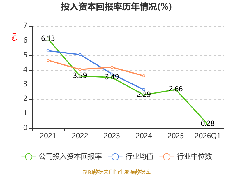 盈利能力方面, 2026年一季度公司加权平均净资产收益率为0.29%,同比上升0.33个百分点。公司2026年第一季度投入资本回报率为0.28%,较上年同期上升2.51个百分点。