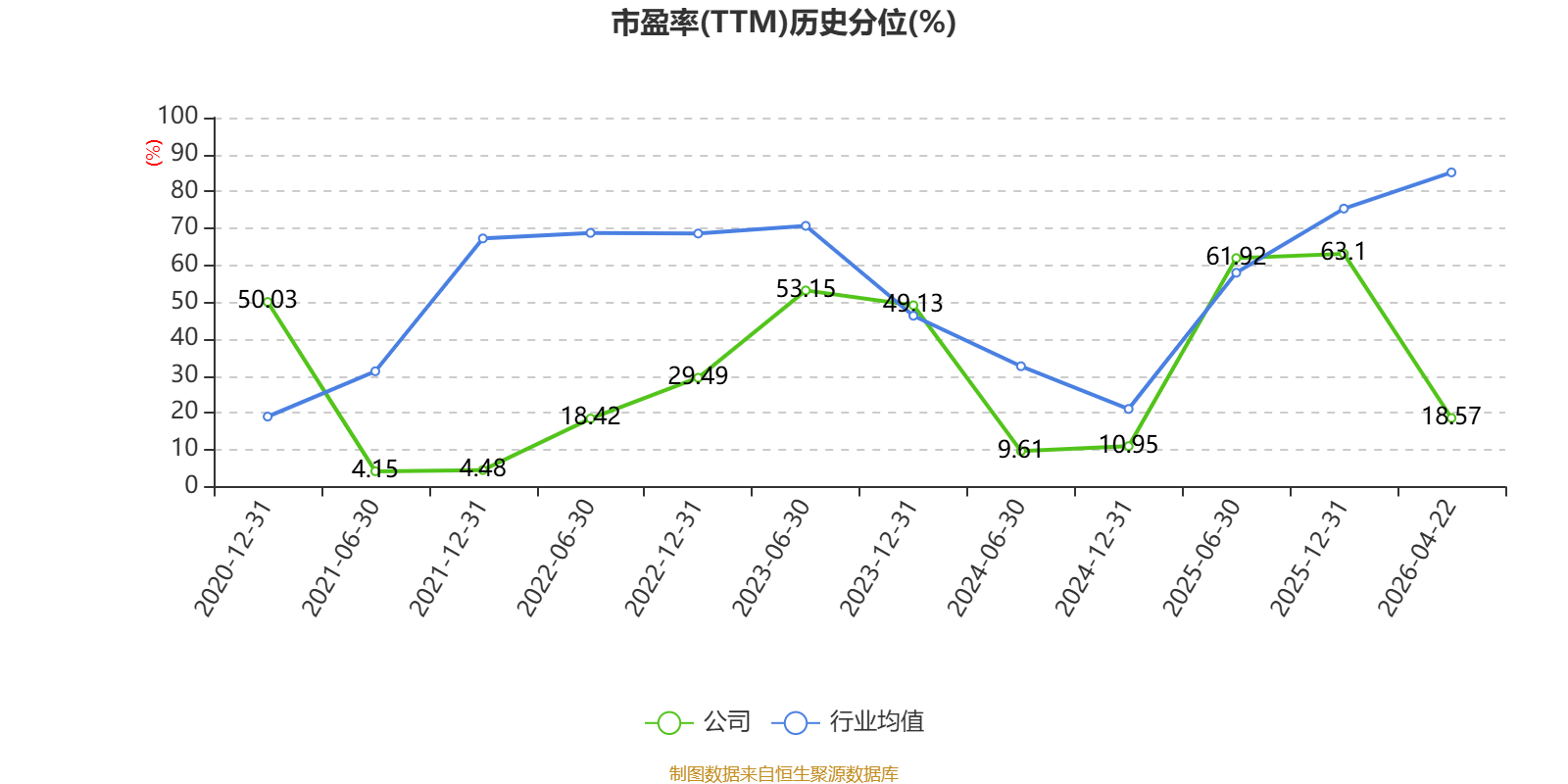 市盈率、市净率为负时,不显示当期分位数,会导致折线图中断。