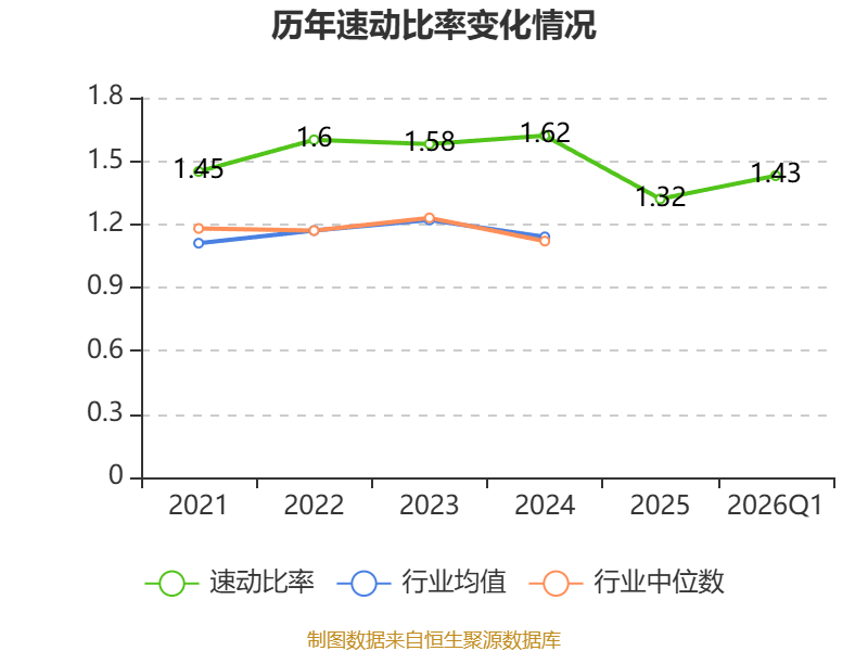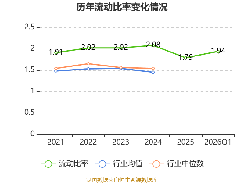 2026年第一季度,公司流动比率为1.94,速动比率为1.43。