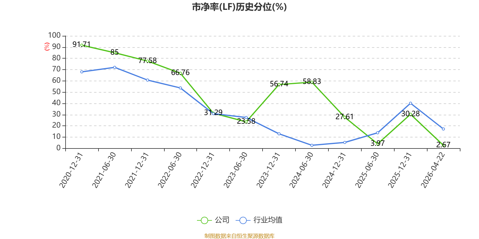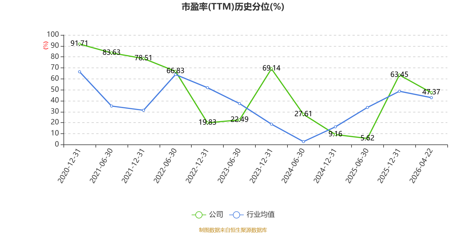 市盈率、市净率为负时,不显示当期分位数,会导致折线图中断。