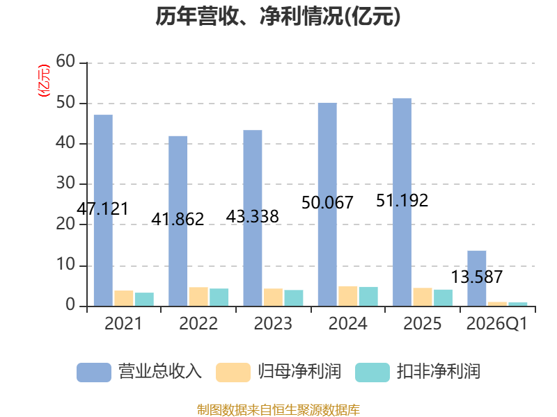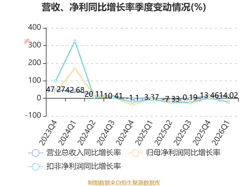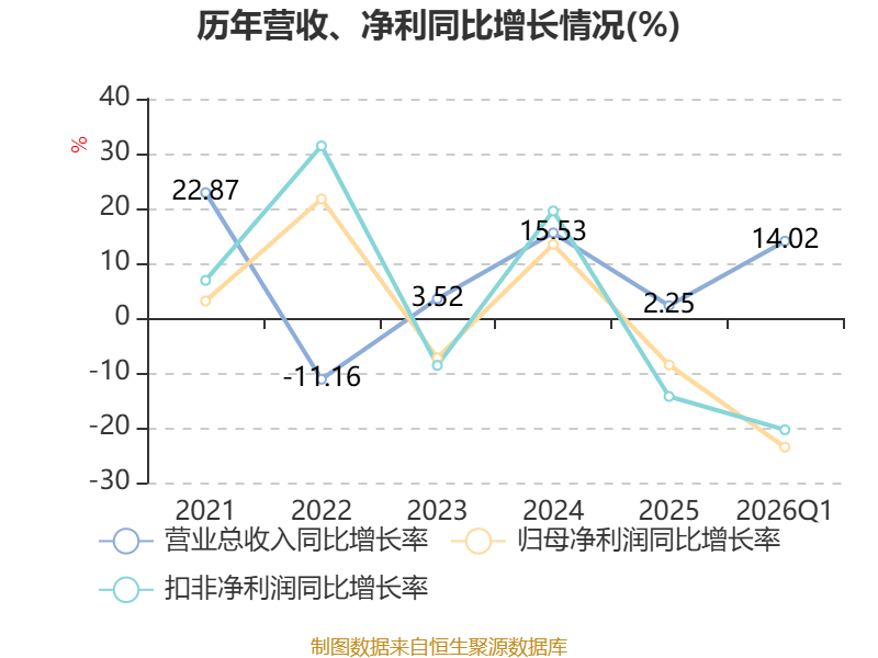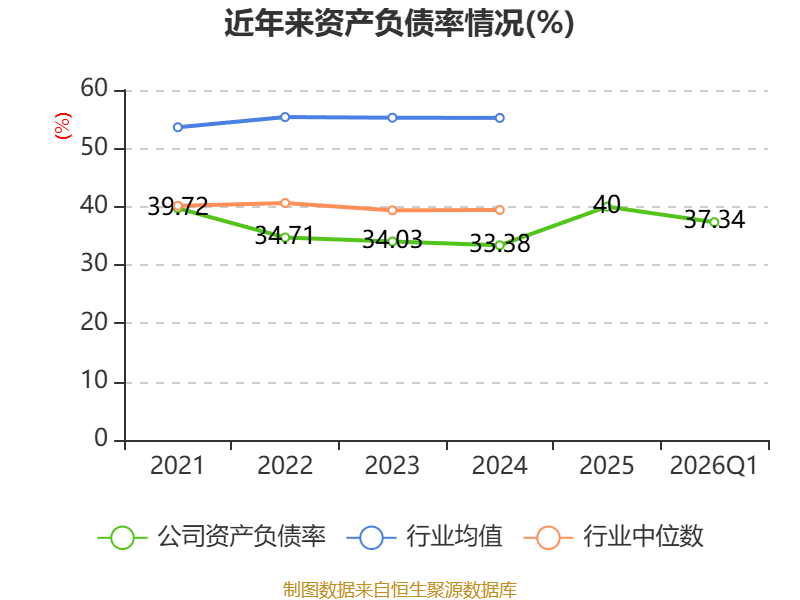 负债重大变化方面,截至2026年一季度末,公司应付票据及应付账款较上年末减少10.72%,占公司总资产比重下降1.61个百分点;其他应付款(含利息和股利)较上年末减少45.82%,占公司总资产比重下降1.34个百分点;应付职工薪酬较上年末减少40.23%,占公司总资产比重下降1.18个百分点;长期借款较上年末增加12.88%,占公司总资产比重上升0.69个百分点。