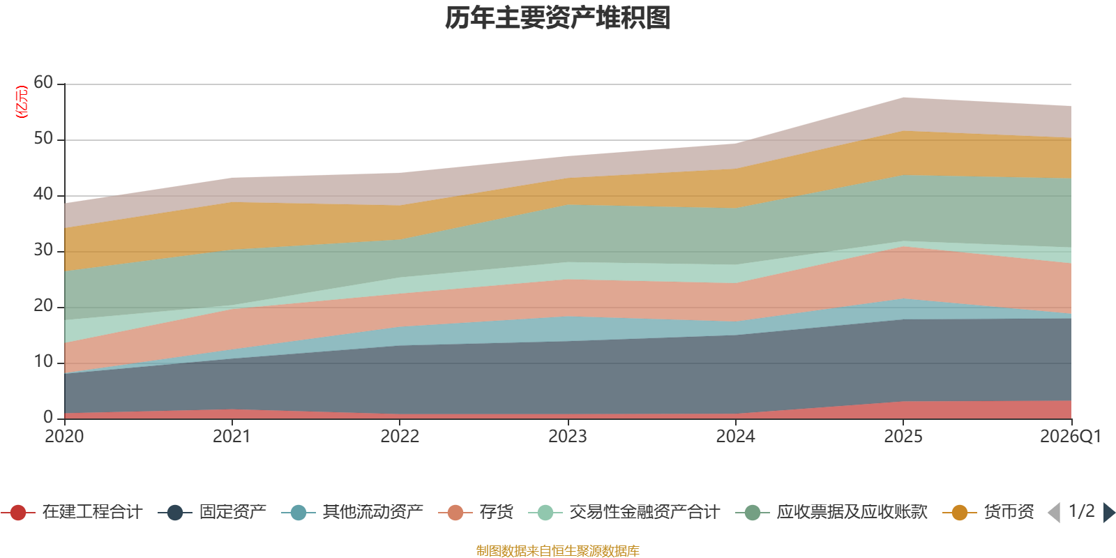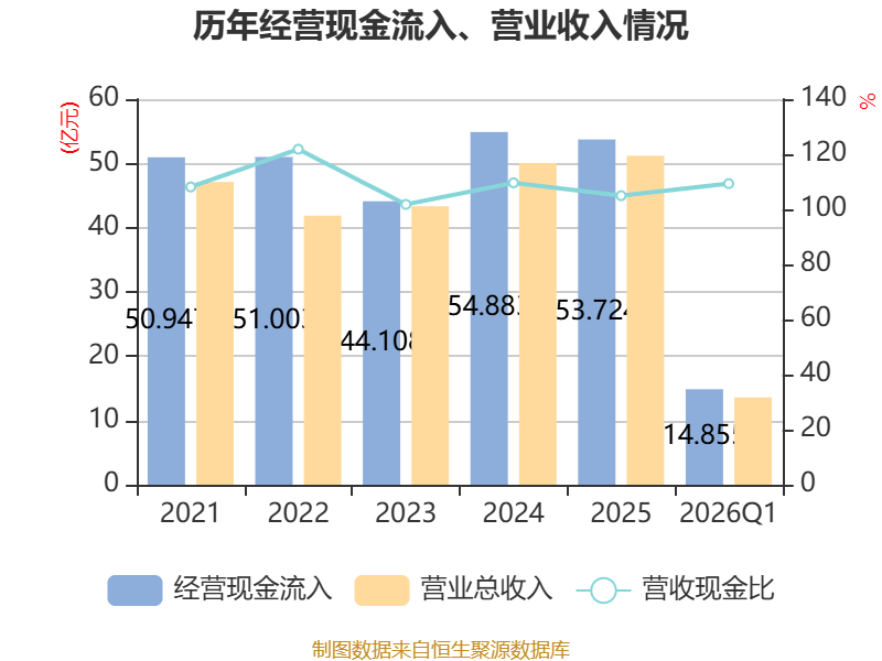 资产重大变化方面,截至2026年一季度末,公司其他流动资产较上年末减少77.52%,占公司总资产比重下降4.98个百分点;交易性金融资产合计较上年末增加203.71%,占公司总资产比重上升3.47个百分点;应收票据及应收账款较上年末增加4.49%,占公司总资产比重上升1.52个百分点;固定资产较上年末增加0.32%,占公司总资产比重上升0.8个百分点。