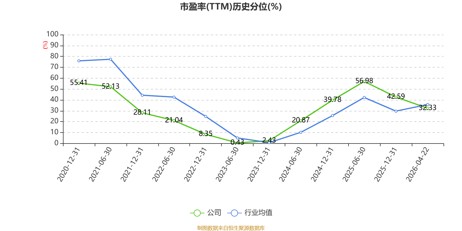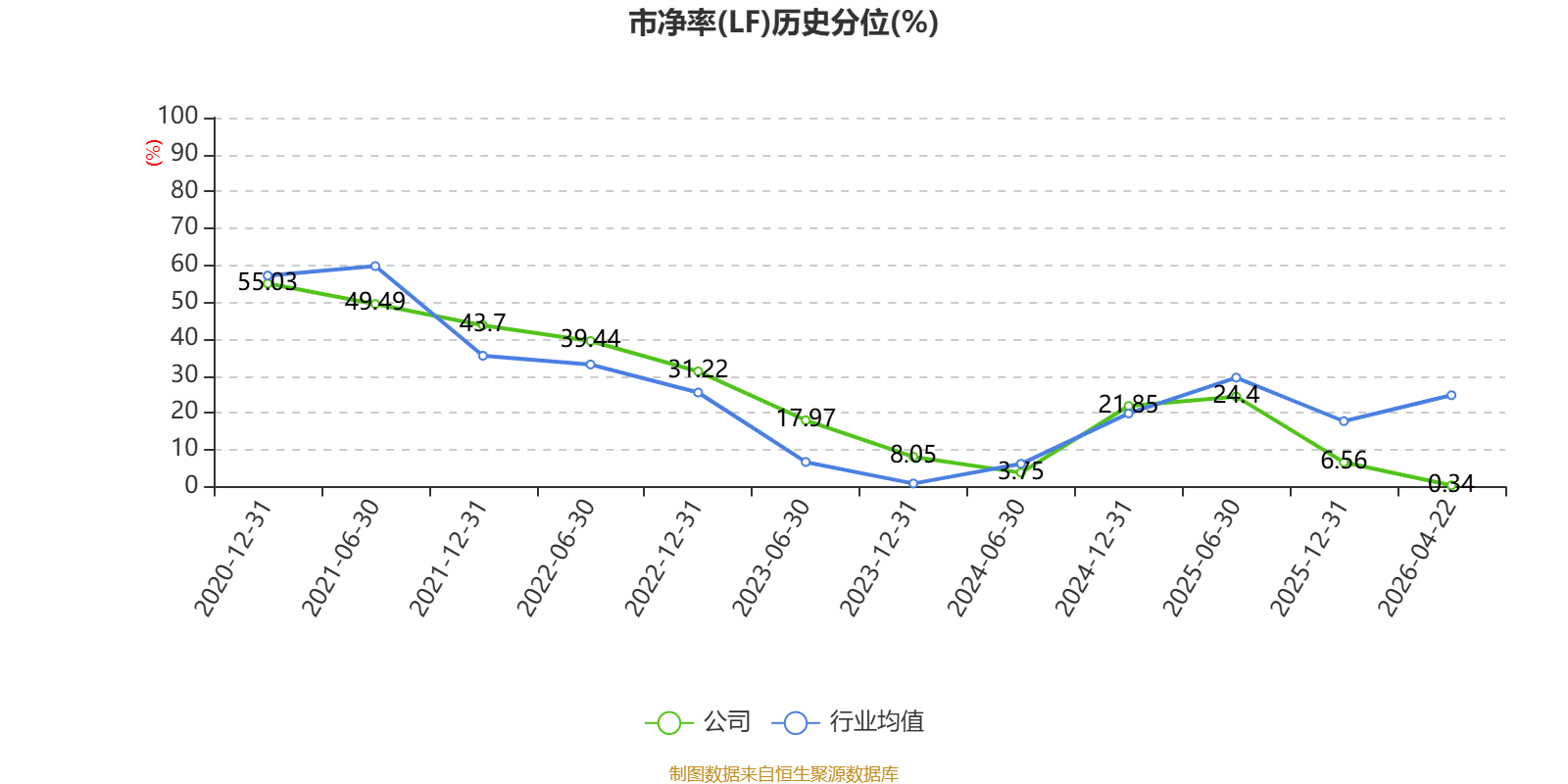 市盈率、市净率为负时,不显示当期分位数,会导致折线图中断。