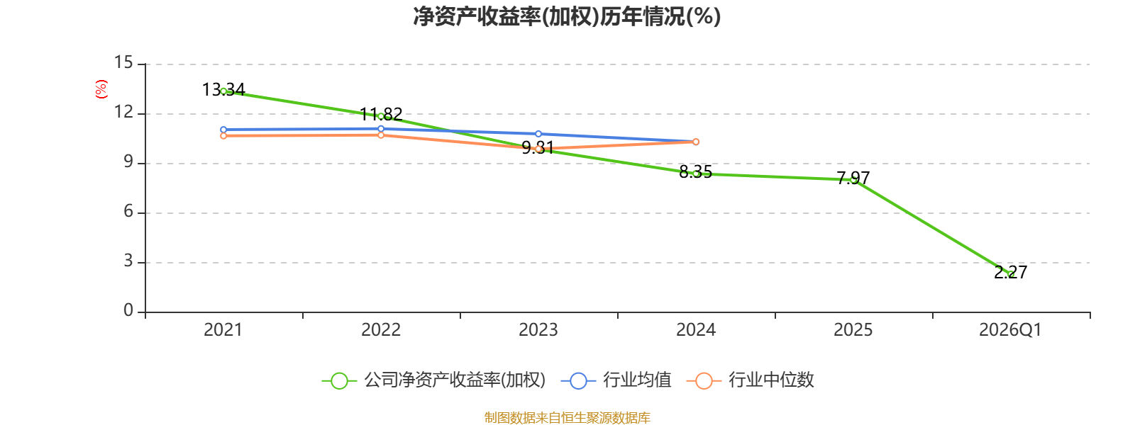 盈利能力方面, 2026年一季度公司加权平均净资产收益率为2.27%,同比下降0.06个百分点。