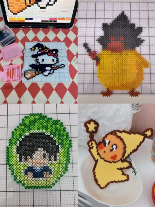 “本以为是无意义地消磨时间,最终竟然有了一个作品。”对于拼豆“上头”(网络流行语,为表达愉悦、沉迷),一名学生告诉贝壳财经记者,并展示了自己的拼豆作品。