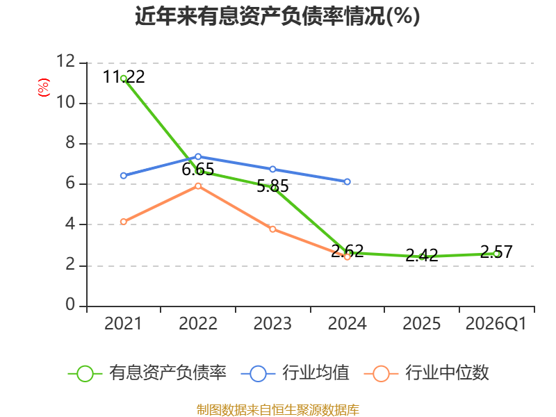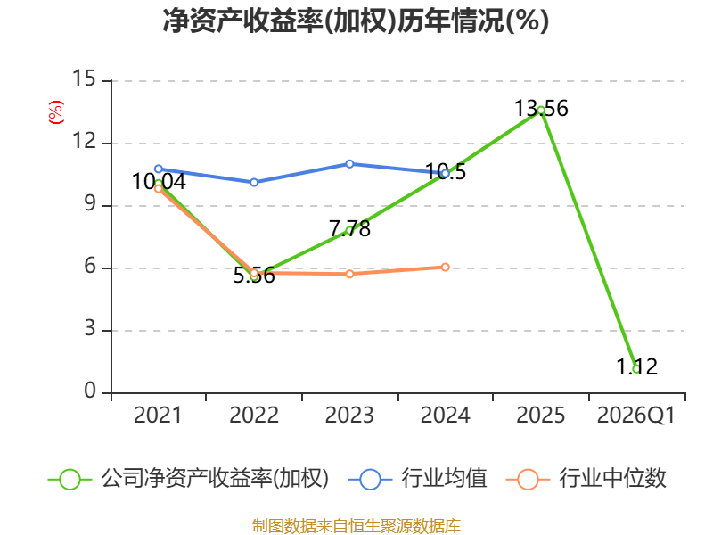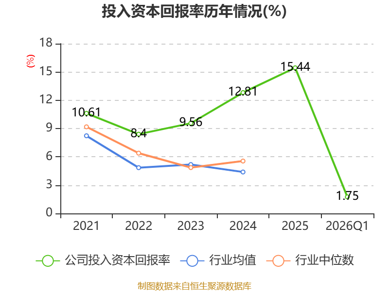盈利能力方面, 2026年一季度公司加权平均净资产收益率为1.12%,同比上升0.23个百分点。公司2026年第一季度投入资本回报率为1.75%,较上年同期上升0.16个百分点。