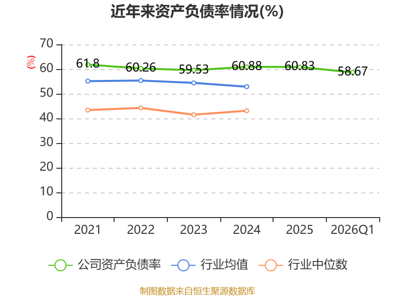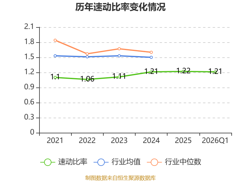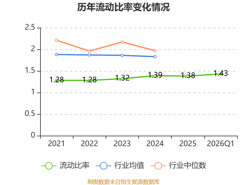 2026年第一季度,公司流动比率为1.43,速动比率为1.21。