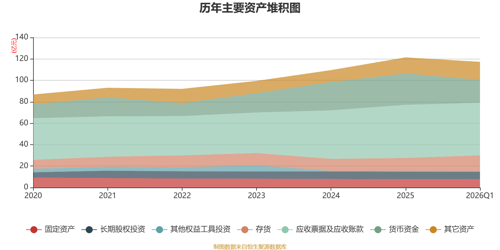 资产重大变化方面,截至2026年一季度末,公司货币资金较上年末减少27.2%,占公司总资产比重下降5.95个百分点;存货较上年末增加21.59%,占公司总资产比重上升2.55个百分点;预付款项较上年末增加92.06%,占公司总资产比重上升1.31个百分点;应收款项融资较上年末增加50.93%,占公司总资产比重上升1.14个百分点。