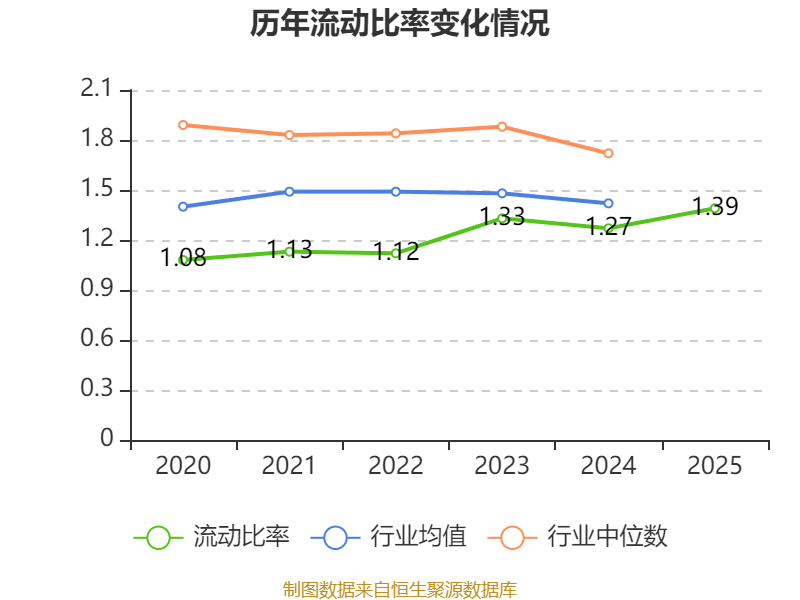 2025年,公司流动比率为1.39,速动比率为1.05。