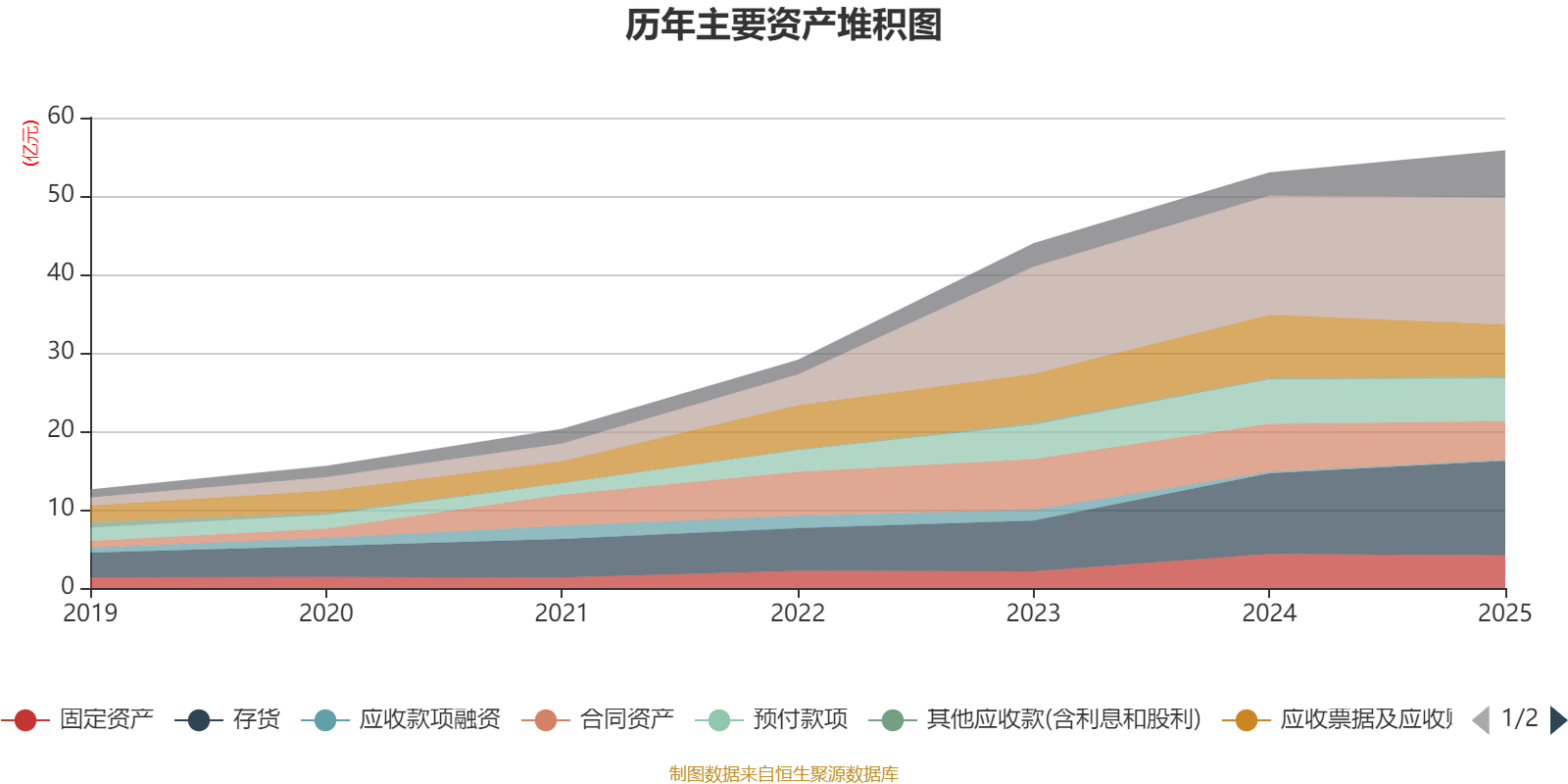 资产重大变化方面,截至2025年末,公司交易性金融资产合计较上年末增加421.67%,占公司总资产比重上升3.74个百分点;应收票据及应收账款较上年末减少18.45%,占公司总资产比重下降3.45个百分点;合同资产较上年末减少19.02%,占公司总资产比重下降2.67个百分点;存货较上年末增加17.47%,占公司总资产比重上升2.23个百分点。