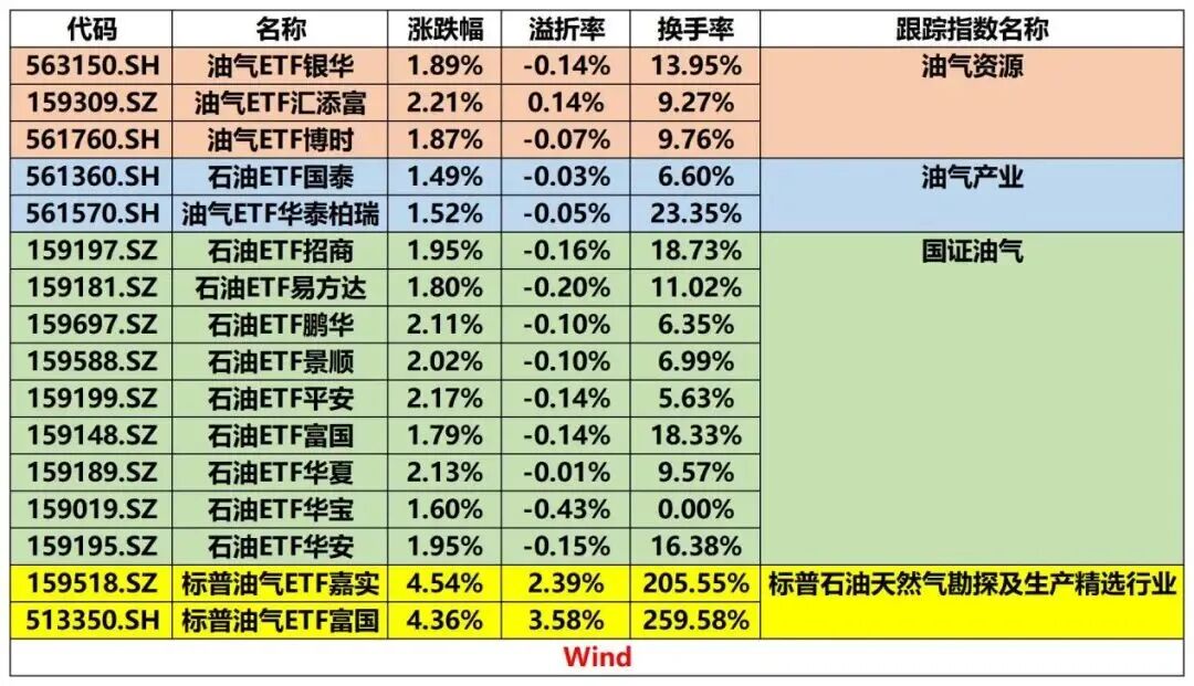 【导读】油气、能源ETF“霸屏”涨幅榜