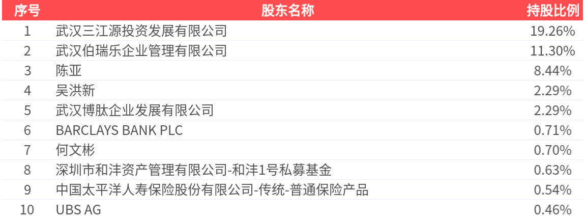 公司股东户数为2.14万户,前十大股东持股数量为6103.17万股,占总股本比例为46.63%,前十大股东持股情况如下: