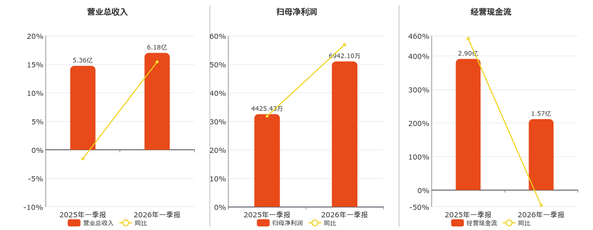 公司营业总收入为6.18亿元。归母净利润为6942.10万元。经营活动现金净流入为1.57亿元,较去年同报告期经营活动现金净流入减少1.33亿元,同比较去年同期下降45.92%。
