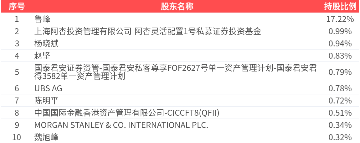公司股东户数为11.75万户,前十大股东持股数量为1.46亿股,占总股本比例为23.44%,前十大股东持股情况如下:
