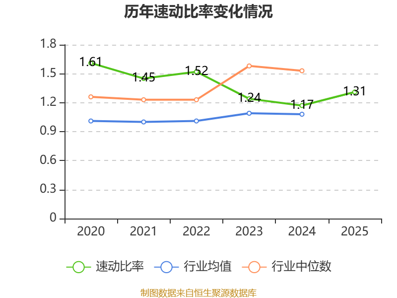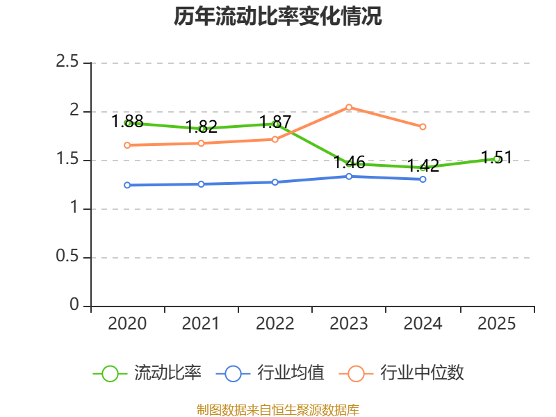 2025年,公司流动比率为1.51,速动比率为1.31。
