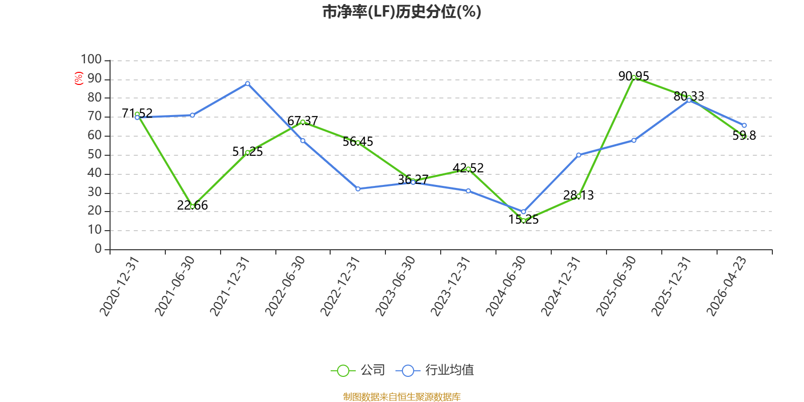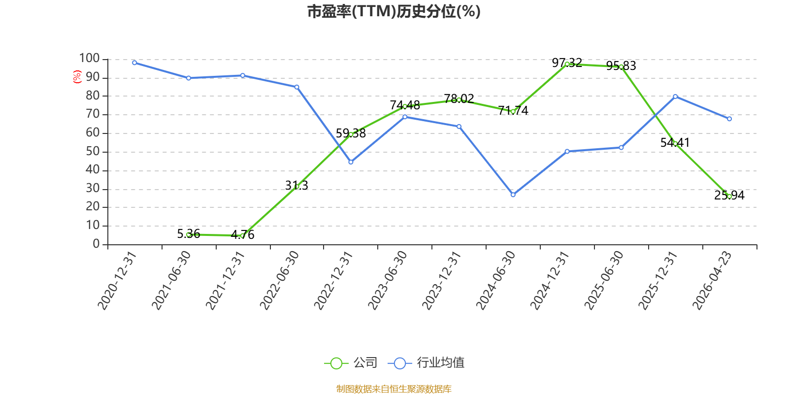 市盈率、市净率为负时,不显示当期分位数,会导致折线图中断。
