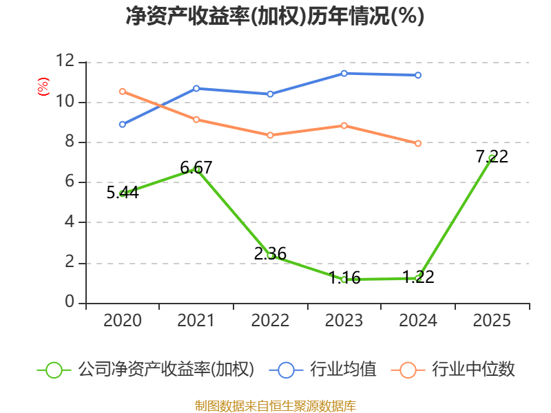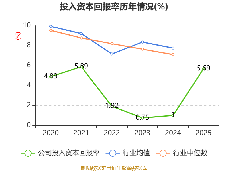 数据显示,2025年公司加权平均净资产收益率为7.22%,较上年同期上升6个百分点。公司2025年投入资本回报率为5.69%,较上年同期上升4.69个百分点。