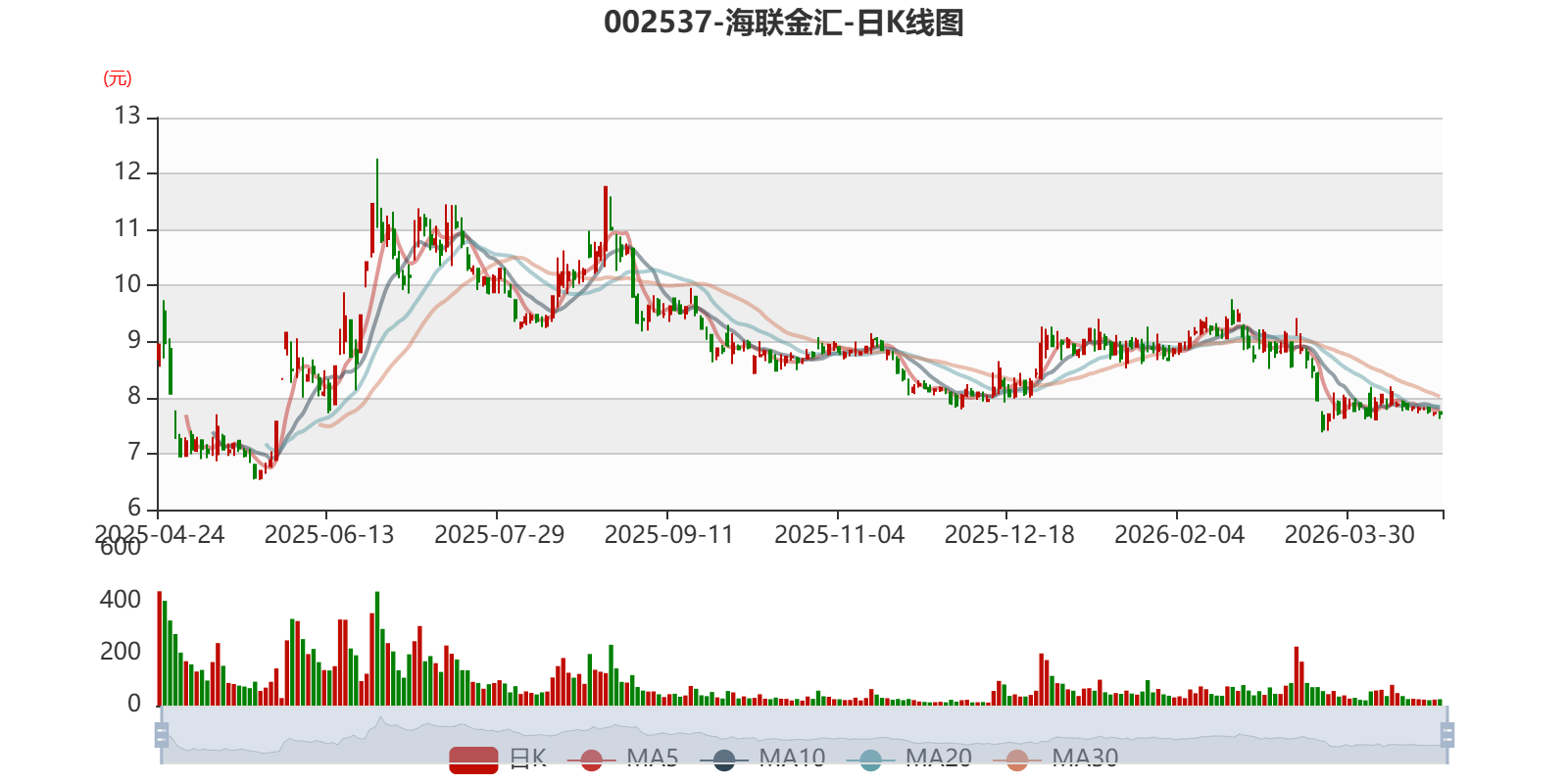以4月23日收盘价计算,海联金汇目前市盈率(TTM)约为30.13倍,市净率(LF)约2.09倍,市销率(TTM)约1.31倍。