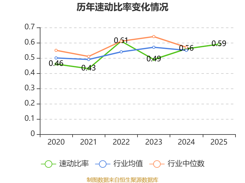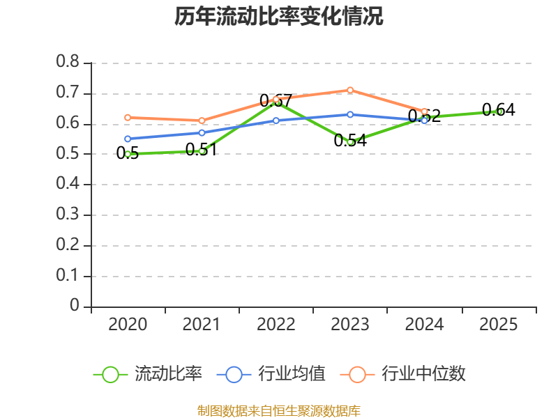 2025年,公司流动比率为0.64,速动比率为0.59。