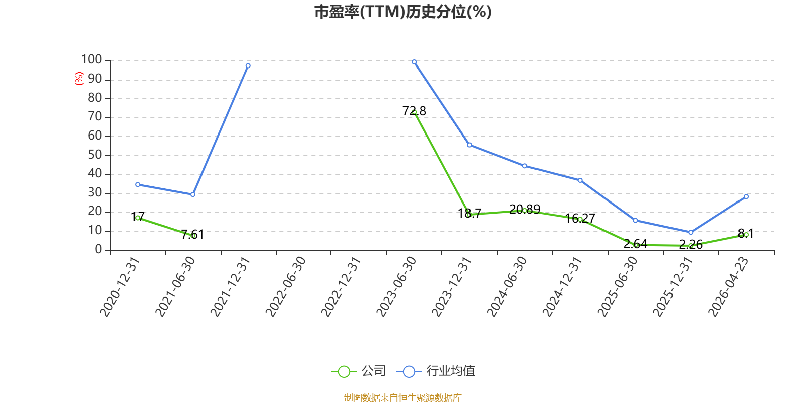 市盈率、市净率为负时,不显示当期分位数,会导致折线图中断。