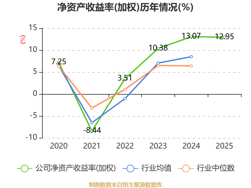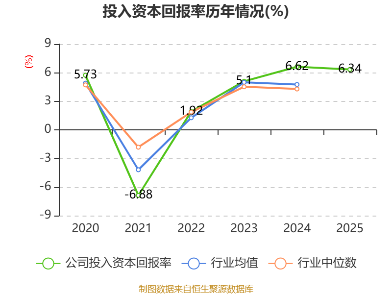 数据显示,2025年公司加权平均净资产收益率为12.95%,较上年同期下降0.12个百分点。公司2025年投入资本回报率为6.34%,较上年同期下降0.28个百分点。