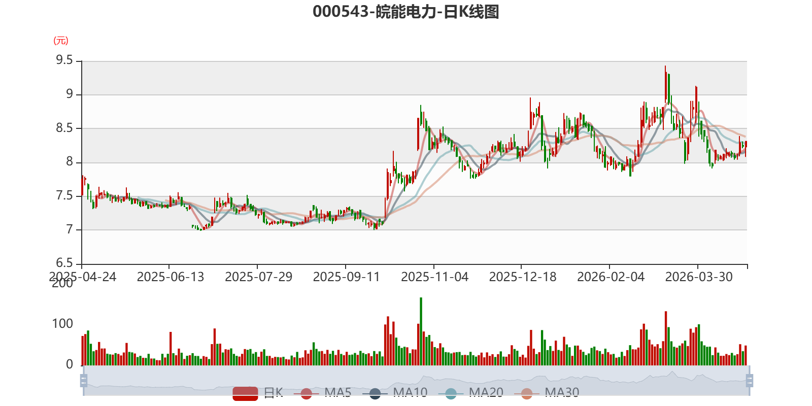 中证智能财讯皖能电力(000543)4月24日披露2025年年度报告。2025年,公司实现营业总收入273.06亿元,同比下降9.26%;归母净利润21.49亿元,同比增长4.15%;扣非净利润20.92亿元,同比增长2.28%;经营活动产生的现金流量净额为53.9亿元,同比增长43.47%;报告期内,皖能电力基本每股收益为0.95元,加权平均净资产收益率为12.95%。公司2025年度分配预案为:拟向全体股东每10股派现3.79元(含税)。