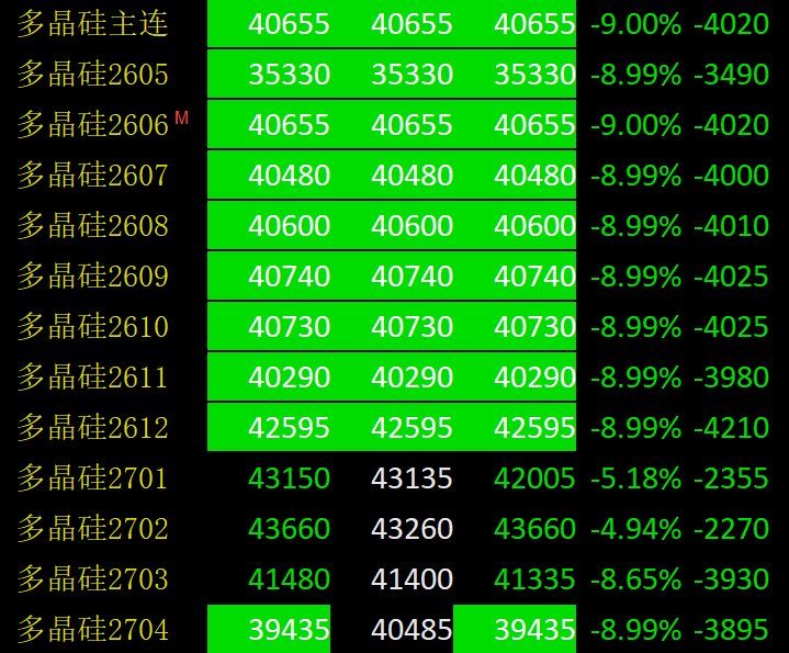 在前期大幅上涨后,近期多晶硅期货定价重回“弱现实”逻辑。4月24日,多晶硅期货主力合约PS2606跌停,报40655元/吨。