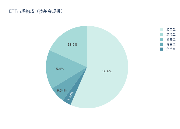 基金规模方面,上周ETF市场总规模达到51364.6亿元,较前一周减少736.5亿元。其中,股票型ETF为29064.36亿元,债券型ETF为7905.95亿元,货币型ETF为1742.6亿元,商品型ETF为3258.73亿元,跨境型ETF为9392.96亿元。